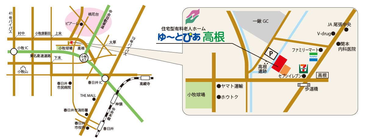 「小牧駅」発 →「高根」停 →徒歩約5分